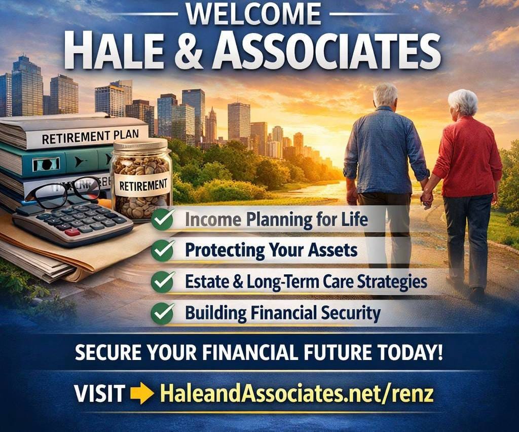 Hale & Associates has been helping Americans build retirement and income strategies since 1983. If you are serious about protecting your financial future in a very unstable economy, talk to professionals who understand long-term planning, tax efficiency, and asset protection. Visit haleandassociates.net/renz and build a strategy, not a wish.